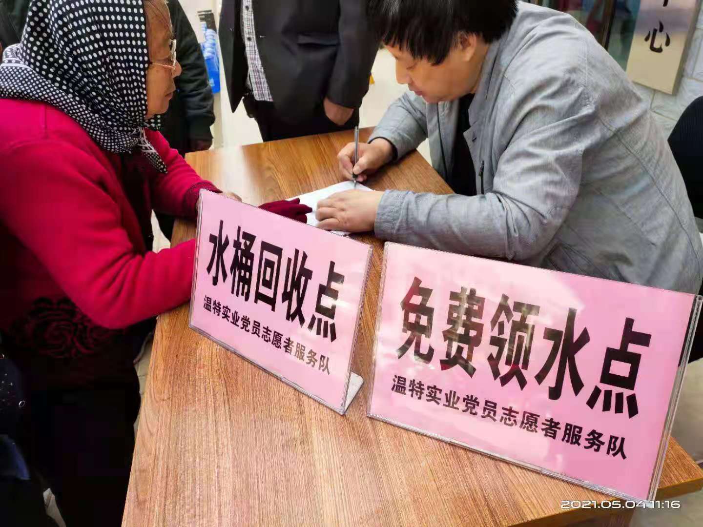 5月4日早上溫特實(shí)業(yè)黨支部得知消息后,及時(shí)與共駐共建社區(qū)物業(yè)負(fù)責(zé)人取得聯(lián)系,確認(rèn)社區(qū)需求,迅速聯(lián)系純凈水廠,急購(gòu)進(jìn)水廠僅存的110桶純凈水,另加一批瓶裝水,于當(dāng)天上午由支部書(shū)記帶領(lǐng)部分黨員及時(shí)送到該社區(qū)(新城社區(qū)西 南區(qū))。